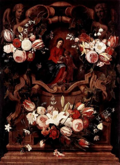 Seghers wykorzystywał swój talent w służbie dla Kościoła i Towarzystwa Jezusowego. Z 200 swoich obrazów tylko 53 było przez niego sygnowanych. Niektóre z nich znajdują się obecnie w znanych muzeach europejskich, amerykańskich i w kolekcjach prywatnych. Jeszcze za jego życia wiele z pośród jego obrazów ofiarowano w prezencie wybitnym osobistościom, np.: Karolowi I, Karolowi II Angielskiemu i królowej Krystynie Szwedzkiej, protektorom zakonu, książętom katolickim, a nawet protestantom. Jego obrazy posiadał także książę Fryderyk Henryk Orański. Dotarły także na dwory królewskie Anglii, Austrii czy Szwecji. Jan Lievens około 1644 roku namalował portret Seghersa. Wprawdzie ta jego podobizna zaginęła bezpowrotnie, ale dzięki rycinie wykonanej przez Paula Pontiusa wiemy, jak on wyglądał. Daniel Seghers miał wielu naśladowców wśród malarzy swojej epoki. Pośród nich najbardziej znanym był Jan Filip VanThielon (1618-1667). Seghers sygnował swoje obrazy inicjałami: D.[aniel] S.[eghers] Soc.tas IESV [Towarzystwo Jezusowe]. W Polsce posiadamy dwa obrazy Seghersa. Jeden znajduje się w Muzeum Narodowym w Warszawie. Jest to kartusz kwiecisty powstały ok. 1650 roku z popiersiem Nicolasa Poussina, francuskiego malarza epoki baroku, tworzącego głównie w Rzymie. Drugie dzieło Seghersa, datowane na ok. 1640 rok, znajduje się w Muzeum Narodowym w Poznaniu i przedstawia Świętą Rodzinę w wieńcu kwiatów. Jeden z jego obrazów tak bardzo się mi spodobał, że zamówiłem jego kopię u sądeckiej malarki Ewy Skrzypiec. Wykonała ją w 2019 roku dla mnie na szkle i mam ją u siebie w pokoju. Na tym obrazie kwiaty i aniołki otaczające girlandę doskonale się w nim komponują, tworząc wiosennoniebiański nastrój.